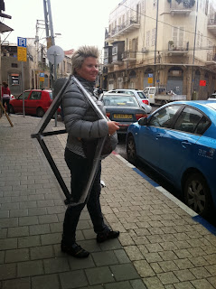 Here is the story: two years ago, some lady contact me over FB and asked whether I'm making fixies. We had a nice chat over phone and after a short delay she arrived to my workshop. Elizabeth was taking a part of so volunteer program happening near Modi'in with organic farm and natural green peace recycling approach. But bicycle was missing so she found me. We created a happy colorful Peugeot and it was delivered to far away farm. Then after a year or so, the program was over, Elizabeth came back to US and: