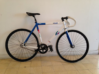 It's quick, slick and good looking bike as expected from Cinelli. Adding new pair of wheels, Miche crankset, track handlebar and the result is below.
